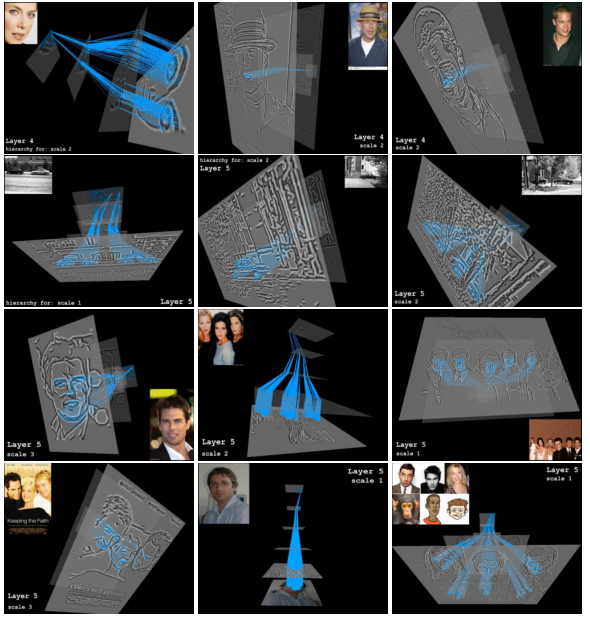 Examples of the detections obtained from the highest layer of the hierarchical compositional model:
